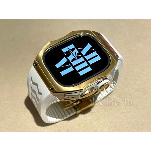 Apple Watch Ultra 49mm 金銀色鈦合金手錶殼(白色錶冠+白色橡膠錶帶)